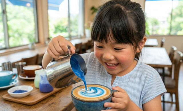 青い飲み物!?ブルーラテ・アート体験