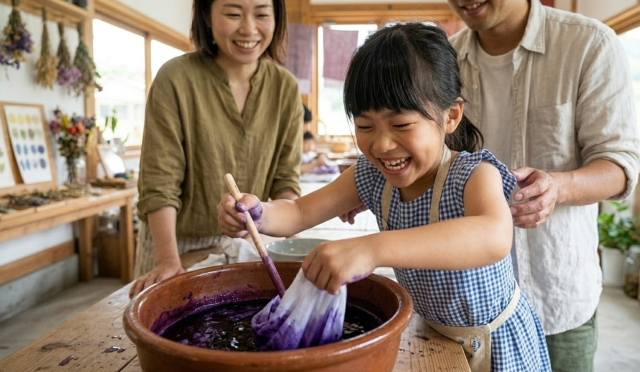 ブルーベリーの液に布を浸して鮮やかな紫色に染め上げよう