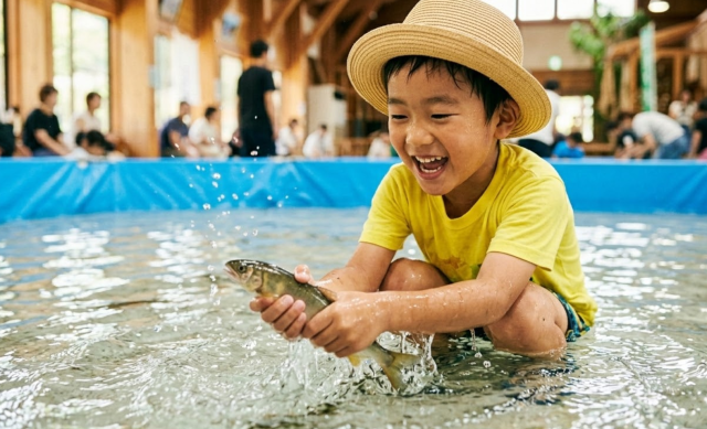 すばしっこいお魚を素手で追いかけて捕まえるスリル満点体験