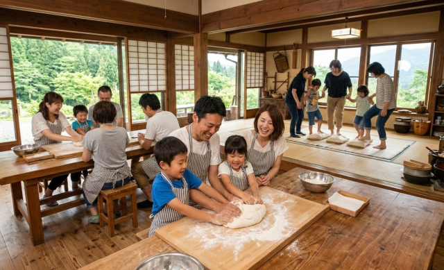 ほうとう手打ち体験、 ブルーラテ・アートなど、 手を動かして完成させる食プログラムが充実。 つくって、味わって、学べる—— 地域の食に触れられる体験がそろいます。