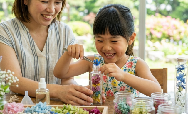 お花を選んで瓶に詰める!キラキラ綺麗なハーバリウム作り