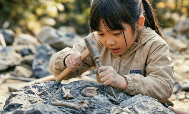 ハンマーで石をコンコン叩いて古代の化石を見つけ出そう
