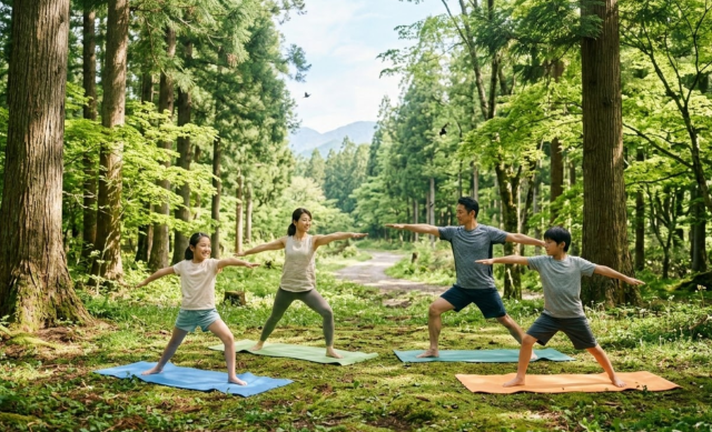 森のきれいな空気を吸ってストレッチ!心も体もポカポカに